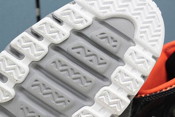 除了波浪鞋底之外,與慢跑鞋更為輕量、透氣和抓地衝刺的特性不同,ZigTech籃球鞋的鞋底刻畫了許多V字紋路,其目的也是為了因應球場特性,提供運球前進、連續彈跳時,所需要的抓地動力和急停效果。