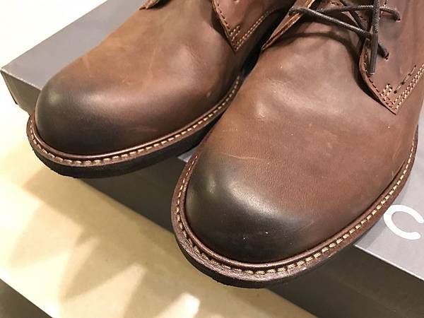 是我喜愛的版型,顏色也是百搭的深咖啡還帶有漸層的刷色,在結帳時店員還強調因為是clearance,鞋面有些刮痕。但本人認為這種鞋有幾道刮痕更顯得有自己的特色!實穿上鞋底軟硬度適中,皮革不咬腳。穿上後一次愛上!
