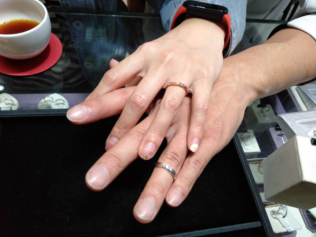 ▼我弟他們試戴了一些婚戒,看看哪一款最適合他們的手指,弟妹心中開始有了一些想法,先將喜愛的款式保留下來,但仍然對做出最終選擇感到不確定。