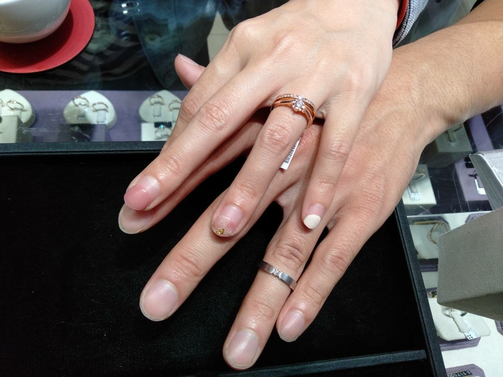 ▼試了好多款不同的婚戒,並在老闆的專業建議下,最終做出了決定。我們選擇了一款經典而優雅的設計,戒指上鑲嵌著一顆閃爍的鑽石,象徵著愛情的純潔和堅固;鑽石小巧精緻,生活上配戴也不會妨礙做事,很輕巧方便。
