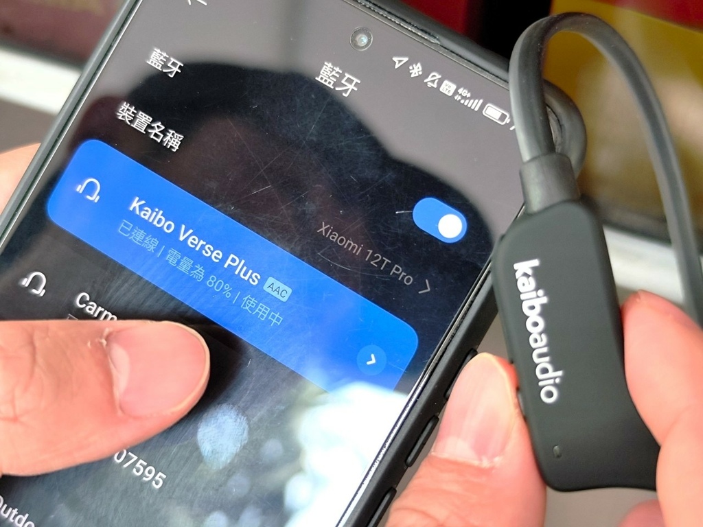Kaibo Verse Plus骨傳導藍牙耳機支援藍牙5.2/10m傳輸範圍,像小金使用的手機早就已經把傳統3.5mm耳機孔取消,所以一直在找一款好用的藍牙耳機,用了Kaibo Verse Plus骨傳導藍牙耳機後真的回不去了,開耳的設計對於習慣長時間使用耳機的我來說真的太舒服了。
