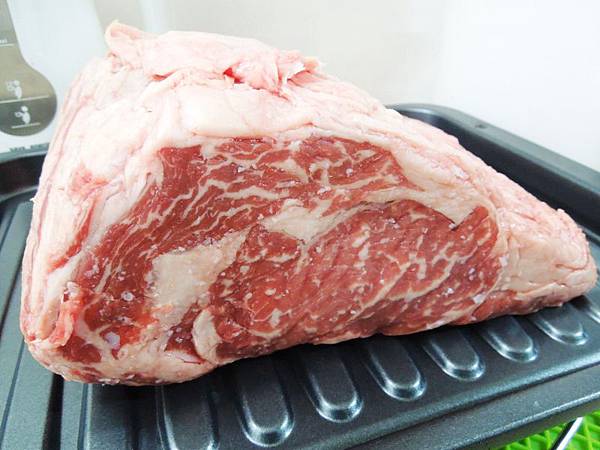 這次烤的時候沒有綁線,所以是呈現牛肉的原本的形狀,如果綁線可以整成圓形,也可以避免散開。但我覺得肋眼不需要綁,所以這次沒有綁線。