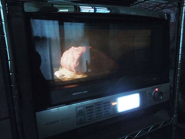 送入烤箱開始烤,第一階段,熱風烘烤130度,60分鐘。