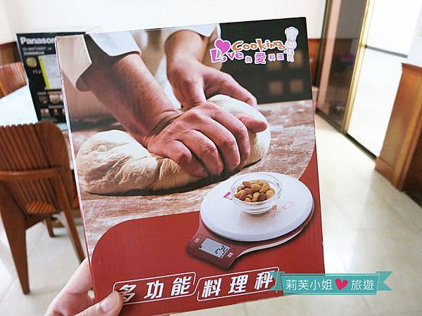 附贈的電子磅秤非常方便,尤其是自動歸零的設計,能把容器的重量扣除。另外還附贈一件飛利浦的圍裙,買國際牌麵包機送你飛利浦圍裙,莫名的有笑點。