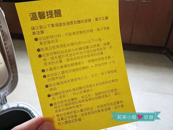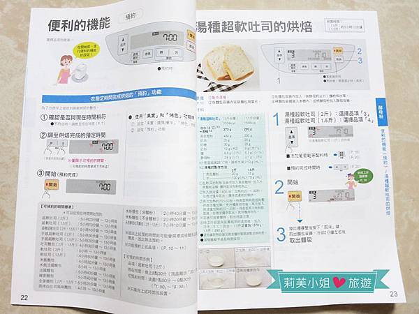 精美中文說明書與四十種作法的代號,說明書可以在台灣官網下載再自行列印,不過還是原廠提供的比較精美,每一頁都是彩色印刷,後面還有記錄麵包失敗的圖文解說。