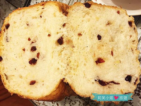 剛出爐的蔓越莓松子牛奶吐司,自製吐司就是可以這樣不惜成本的狂加配料。