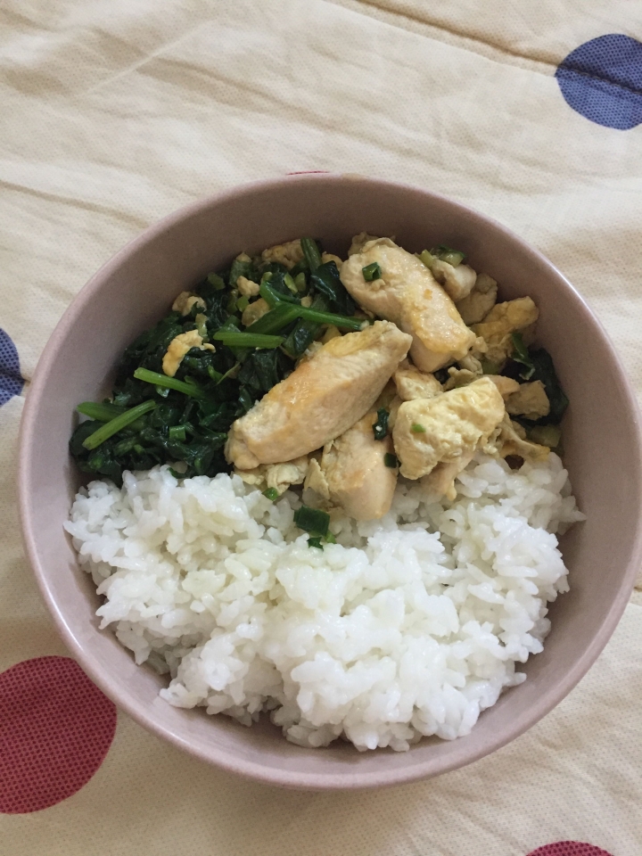7/15寶寶午餐1y3m雞肉、青菜雞胸肉半片~切塊蛋1顆~打散青蔥1株~切花,蔥白、蔥綠分開水滾加點鹽拌勻,關火放入雞胸肉泡熟(今天肉還冰冰的所以泡15分鐘)熱鍋倒油泡熟的雞胸肉裹上蛋液放入鍋中表面的蛋液熟了就可以拌炒剩下的蛋液也一起炒加入蔥白炒香加點素蠔油拌炒放入蔥綠拌炒OK再炒個菠菜OK嫩嫩的雞胸肉寶貝很愛