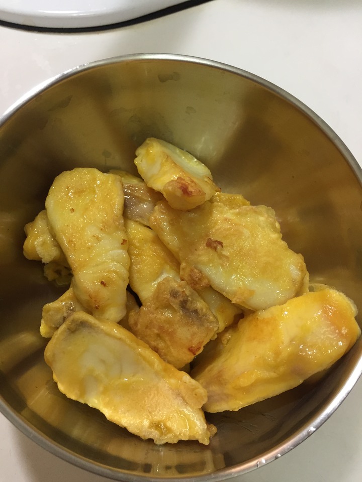 2021/7/26 寶寶版糖醋魚片2y3m煮飯日常,每過一陣子就會煮簡單的蕃茄醬放在冰箱備用可以煮牛肉湯、做吐司Pizza早餐、煮糖醋料理等等,對要照顧寶寶的我來說很方便今天要煮寶寶愛吃的青椒嫩薑7-8片青椒半根-切條洋蔥1/4顆-切條鯛魚片1片灑上一點鹽-斜切塊,蛋1顆-打成蛋液適量麵粉醬糖、醋、蕃茄醬、水1 : 1 : 2 : 2.5(比例依自己的喜好調整,一般很多廚師都是教1:1:1:2,但如果蕃茄醬是自己做的就要調整一下)準備一個袋子放入魚片塊→倒入蛋液→拿起來搖一搖,讓魚塊都裏上蛋液→將麵粉灑入袋中搖均勻鍋有熱後就調小火,這樣魚片才不容易焦煎成兩面金黃色就可以先挾起備用鍋子還是很乾淨的喔! 可以接著炒放入薑片炒香→放入青椒、洋蔥,炒軟→倒入醬翻炒→放入剛剛煎好的魚片翻炒滾一下就OK嘍!香噴噴