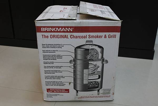 有使用說明……當然全部都是英文啦!最下層是擺放炭火的,中層和上層可以擺放食材,以煙燻悶燒的高溫方式達到燒烤的效果。