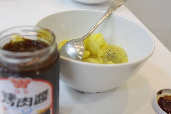 製作方法:先將奇異果壓成泥狀,再倒入一整罐烤肉醬,將之拌勻,冰進冰箱備用即可。