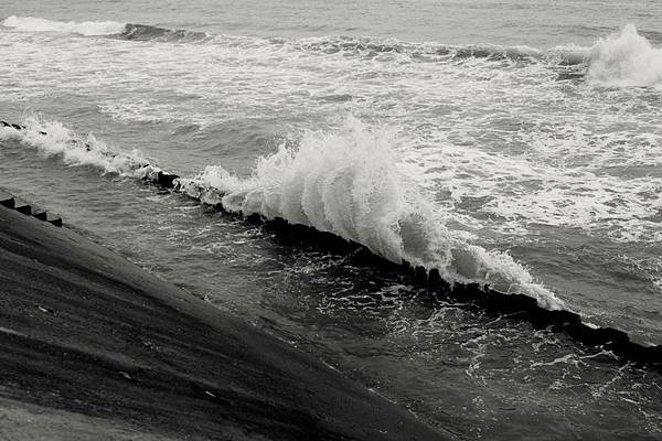 這天的浪很大,浪花一直飛濺到岸上,好刺激呀……哈哈!