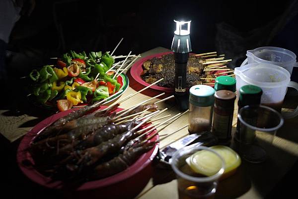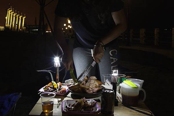 雖然風車公園內有路燈,不過照明程度還是稍嫌不足,幸好我把我的秘密武器Truvii小光罩&手電筒也帶出來了,晚上烤肉也不怕啦!Sandy大姐我是不是揪甘心~