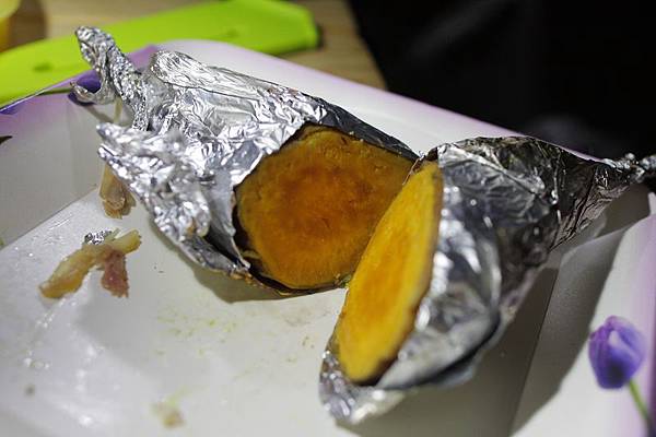 印象最深刻的,是這一次的碳烤蕃薯。以往烤肉的烤蕃薯,都是直接包鋁箔紙,丟進碳火裡燒,這樣烤出來的地瓜,往往會因為溫度太高、造成表皮烤焦,但這一次使用爐子用悶燒的方式,所以不僅不會烤焦,烤出來的地瓜還超~軟嫩的!入口即化的感覺,實在太神奇啦!大受好評呢!