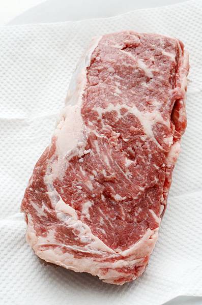 首先要將牛排解凍並且回溫,如果是冷凍的牛肉需要先移到冷藏24小時,要煎之前的半小時拿出來在室溫下,讓肉回到跟室溫相同的溫度。解凍的過程千萬不可將冷凍的肉直接放在室溫解凍,或是沖水解凍,這樣會使牛肉流失肉汁及鮮甜的風味。