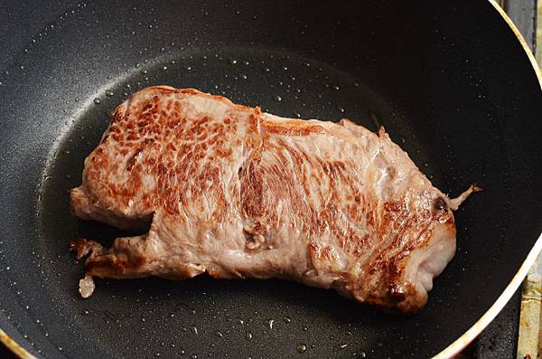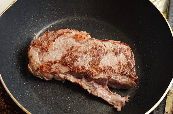 起鍋後鍋子裡只有少許牛排釋放出來的油,很好清理