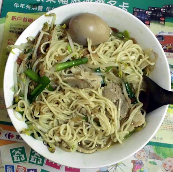 我知道外省麵店和閩南人製作小菜會喜歡在滷汁內放入中藥包、八角等香料讓滷蛋吃起來更齒頰留香,豐富層次令人回味無窮,不過這裡的滷蛋都是死鹹到蛋黃都鹹香入味,令我難忘,值得提筆留念,南部終日高溫,當地人早已習慣吃重鹹,麵店通常又是務農的農民中午的午餐,不慣吃重鹹、無法吃重鹹的人請斟酌調味配料的比例,麻醬、肉燥和調味醬A其實鈉含量不低,味精、鹽巴可以免放。