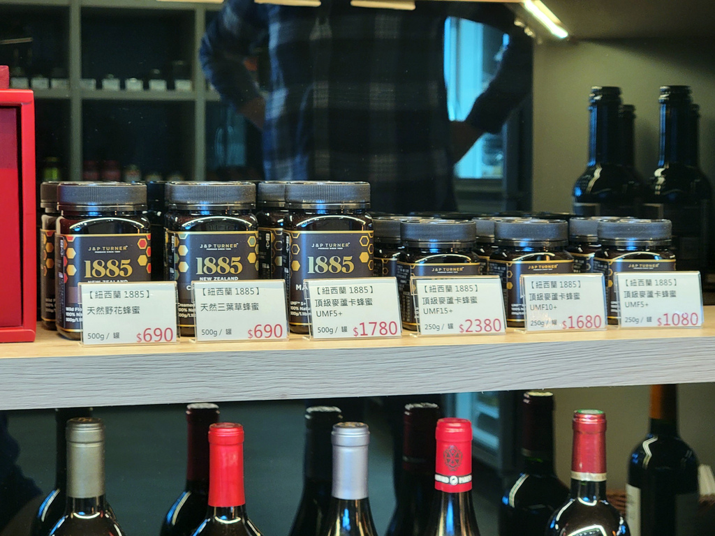 ▼進口食材、醬料也是種類豐富,還有他們代理的澳洲陽光酒莊紅酒、voss氣泡水