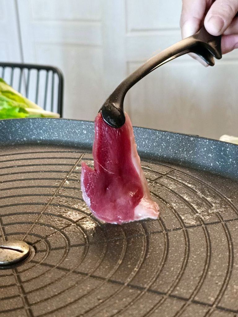 ▼在火鍋裡涮個3、4下就可以吃了,像這樣帶點粉紅色的口感最好吃