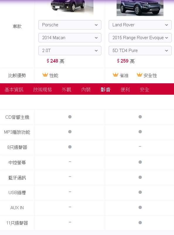 naspic wrote:價格接近,Evoque除了涉水深度比macan強以外我實在是找不到甚麼理由要買Evoque Evoque賣的不正是越野能力嗎?短軸距本身就是相當大的優勢之一(Evoque 2660mm vs Macan 2807mm)↑40.8公斤米的扭力,高於35.7的Macan 2.0汽油版,每次紅燈過後起步,就讓你輕鬆不重拖的舒服感受,更不用比爬坡了,較低的油價、較低的油耗、較低的稅金,隨便列也有好幾項優點,怎麼會一個理由都沒有?這還沒算上外觀、內裝,以及音響,建議你去聽聽Evoque的音響看看,它把演奏廳都搬上車了,聽過之後你就會覺得那些什麼1A2B、還是P啊、M的都只能叫揚聲器,不叫音響。加上其他因素,若單純只有這兩款來比,只差11萬,在248萬裡面占4.5%不到,東西卻差那麼多,要我選的話,說什麼也是選Evoque,我實在想不出理由要買Macan 2.0汽油,它的237P,還必須得在提高安全風險、違規風險下才享受的到。