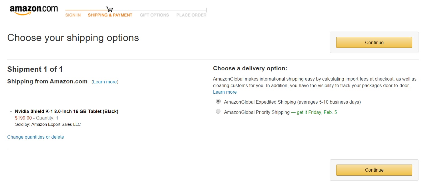 選擇一般運送Continue