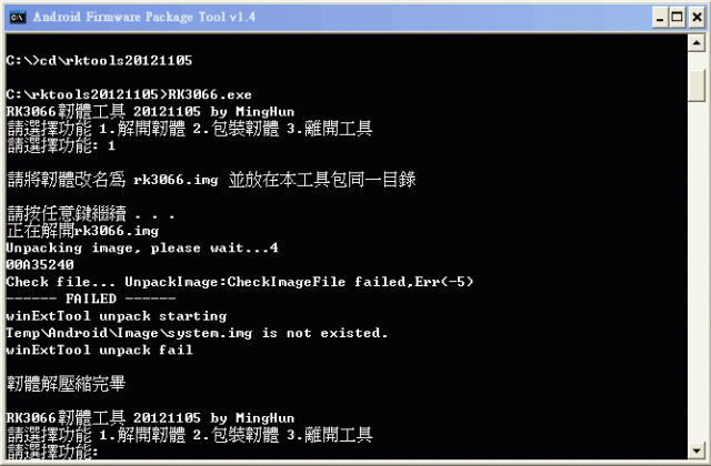48stone wrote:在XP SP3 32...(恕刪) 它是由官方提供的打包工具這個錯誤訊息也是由官方的RKImageMaker.exe回傳的我自己猜有可能被加密或是IMAGE毀損你有試著刷這個ROM進去機器嗎