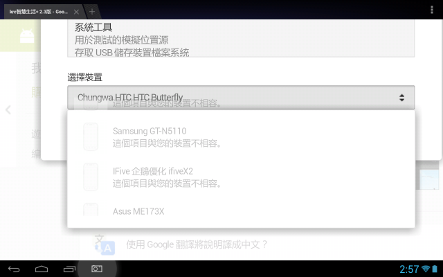 Alexander01 wrote:帥哥!要用GOOGLE搜索,而不是用PLAY商店啦。搜索"智慧生活+apk"第三個就是了。會跑到一個叫做1MOBiLE的網頁,基本上任何裝置不相容的app,用這商店都能安裝。安裝完後,再把這商店移除吧。辦法是人想的,沒有不能安裝的app。XD~) 呵呵~小的不帥啦!謝謝心地善良又博學多聞的 Alexander 大大...ifive X2 安裝完成...