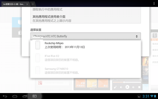 Alexander01 wrote:推薦57頁說的"智慧生活+APK"嘴角上揚的笑XD這才是唯一別人都沒有的APP!起因是因為我姨丈說:平板、手機,明明都可以看電影、電視連續劇。為什麼就沒有特殊一點的阿?害我努力的幫他找。就此墮落啦! 謝謝 Alexander 大大的分享...不過「智慧生活+2.3 版」二個不同 ROM 的 ifive X2 都不給裝,真奇怪...所以只好改裝在 9.7 吋 2048*1536 的 PIPO M6pro 和 現代 X900 上...