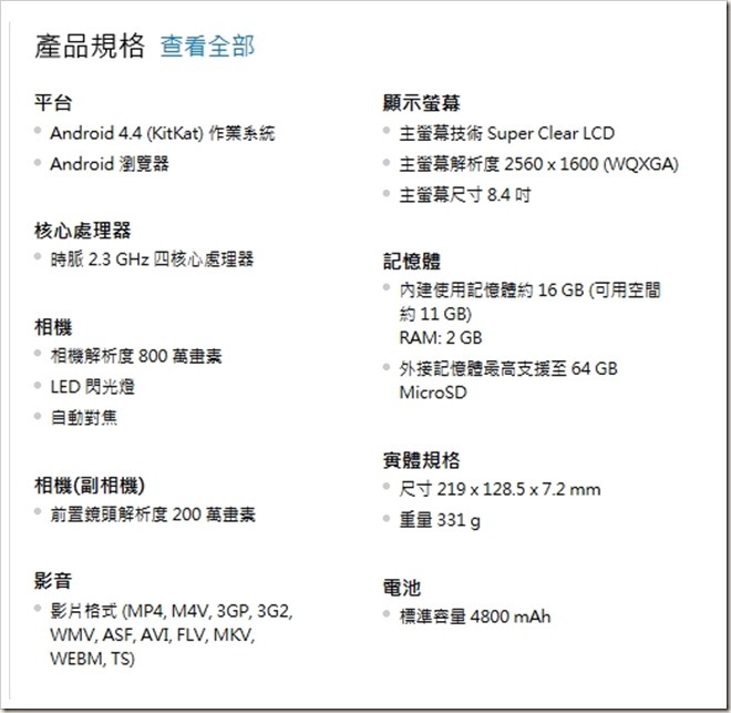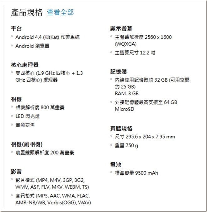 在此,先看一下是NotePRO的重點規格列表,至於全部規格部分,請點選這裡,直接到三星官網觀看。