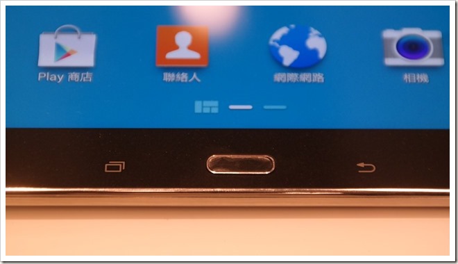 正面下方有實體HOME鍵。而在HOME鍵兩側,右邊邊是返回鍵,左邊則是多工鍵(4G LTE版則是目錄鍵)。