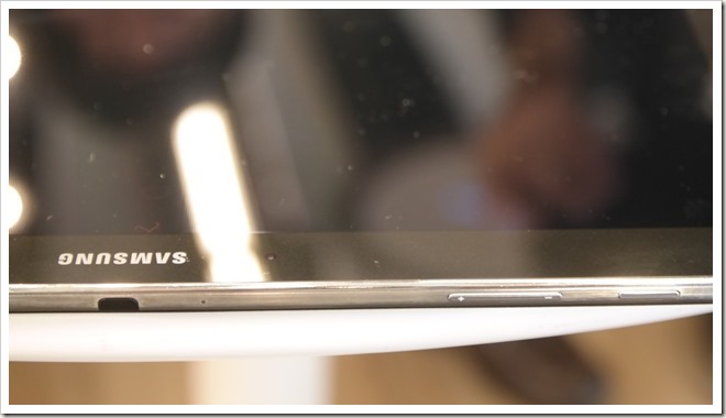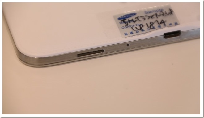 右側部分,從左到右分別是Micro SD卡槽、MicroUSB 3.0充電孔、喇叭、S Pen插槽。如果是4G LTE版,在MicroSD卡槽左邊,還會有Micro SIM卡槽。