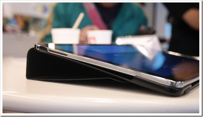 在體驗NotePro 12.2時,也拿到原廠的皮革書本式皮套。在有打字需要時,可以將皮套立起來成照片中的樣子,可以增加打字時的舒適度。