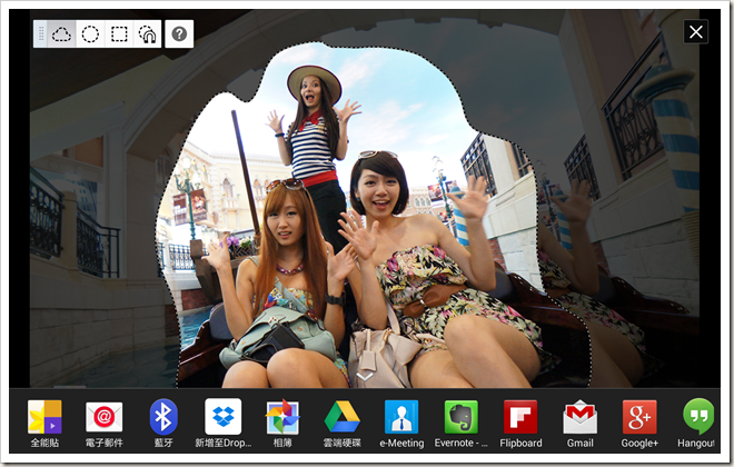 只要將S Pen自S Pen插槽取出後,感應快捷環就會自動顯示於螢幕上,方便使用者快速選取相關功能。