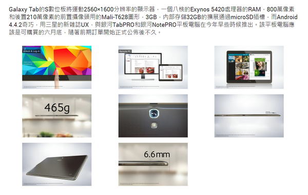 Samsung 新平板Tab s(高解析 , 超輕薄 , 有10.5"跟8.4")