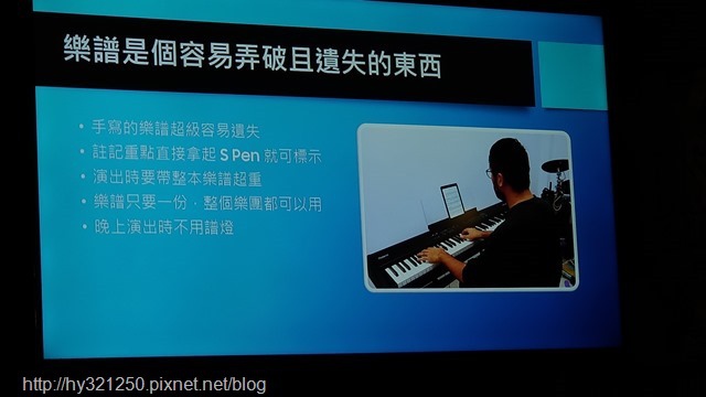 有玩樂團的Kisplay,之前要管理、攜帶紙張樂譜,除了重量重,外出攜帶也容易遺漏,要分享給團員也麻煩。而現在有了Samsung Galaxy Tab S3之後,將之前的樂譜全部數位化放進Galaxy Tab S3裡,前述的問題都迎刃而解了。