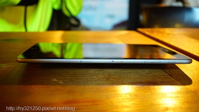 右側邊部分,有電源鍵、音量鍵、microSD記憶卡與SIM卡槽,以及兩個麥克風收音孔。