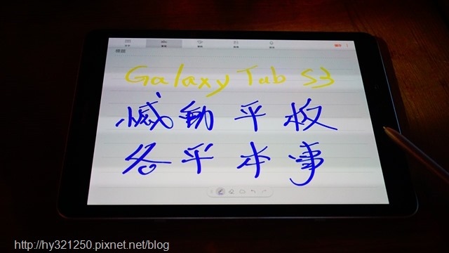 聲、色、筆,是Samsung Galaxy Tab S3平板很強調的重點特性,我覺得是想特別凸顯Galaxy Tab S3與其它競爭對手產品不同之處: