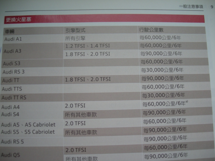 全車系,從9萬or6萬/6年>>>>>降到 2萬公里/2年 要換火星塞。