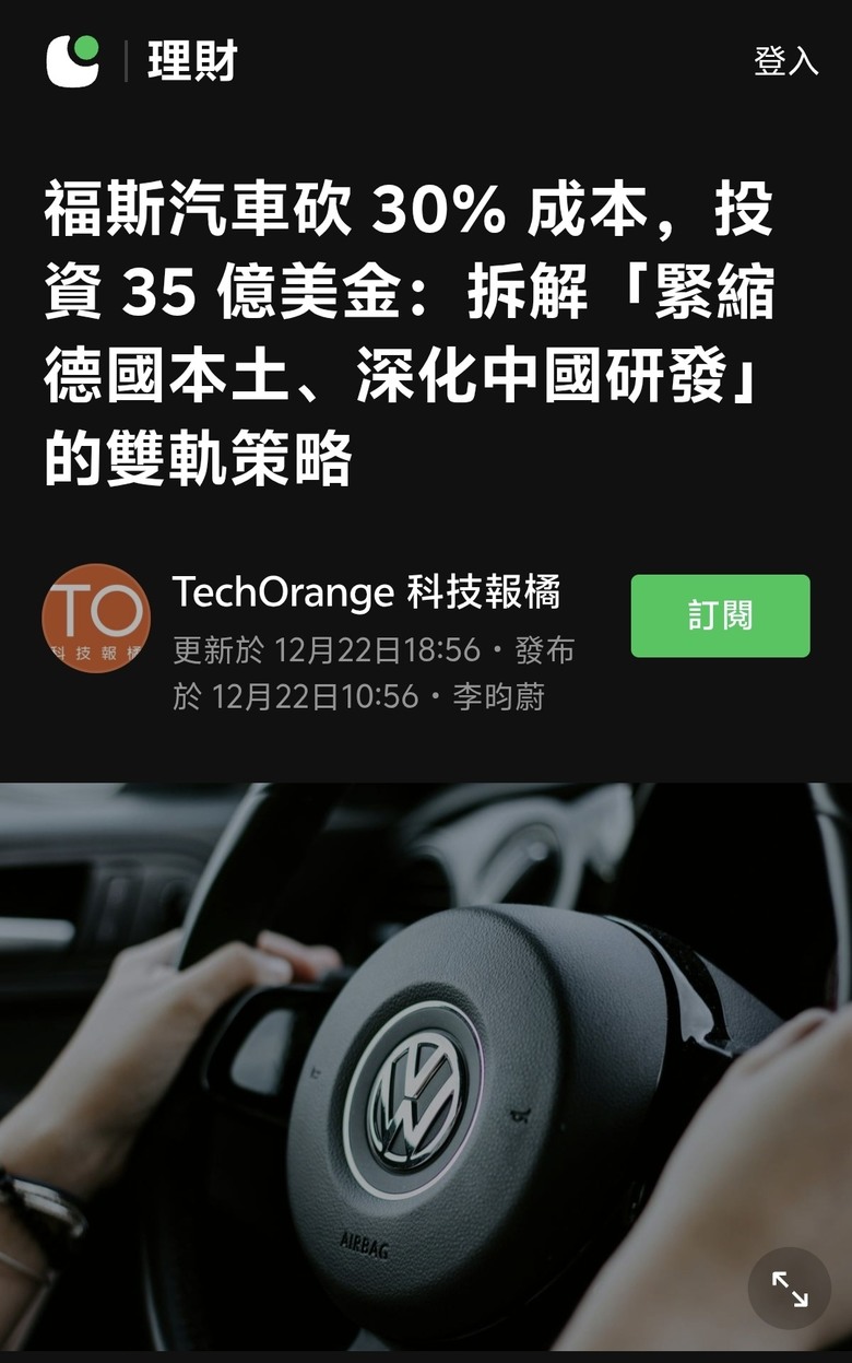 看到某個常翻車又愛尬聊,什麼都要加上政治的強者我大哥出現,實在是有必要放一些,比較專業、符合常人看法的文章,中和一下版上的髒空氣。節錄一下文章重點:「⋯面對電動化轉型的陣痛期、中國本土品牌崛起以及歐洲市場疲軟⋯」很明顯,文章直指政策、競爭力、購買力影響下的結果,但就是常有一些平行世界居民,好像生活中不來一句「都是阿共害的」,就不會生活了一般文章出處:https://today.line.me/tw/v3/article/rmvNx1j會不會等下,又是一頂紅帽扣下來