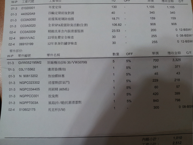 7: 以下家中的golf plus 15000km保養(小保養)請參考。有些是非必要的。真正必要的約