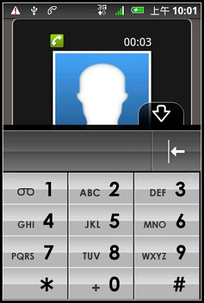 螢幕上方除了話筒之外一樣配置了光感Sensor與距離Sensor(聽說SAMSUNG i5700沒有),在接聽電話時螢幕會自動熄滅: