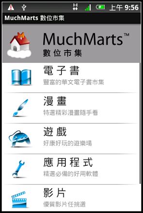 接著就是MUCHTEL A1主推的MuchMarts,這個數位市集的服務從A688開始出現之後,幾乎沒有什麼變化:
