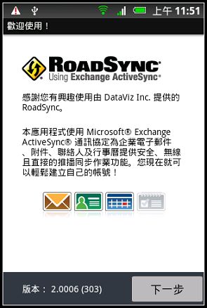 另外就是VIBO A688也有內建的RoadSync,雖說Android手機可以跟Google同步聯絡人、行事曆與信箱等資訊,但如果是公司自己架設的EXCHANG SERVER就要透過Road Sync比較方便啦: