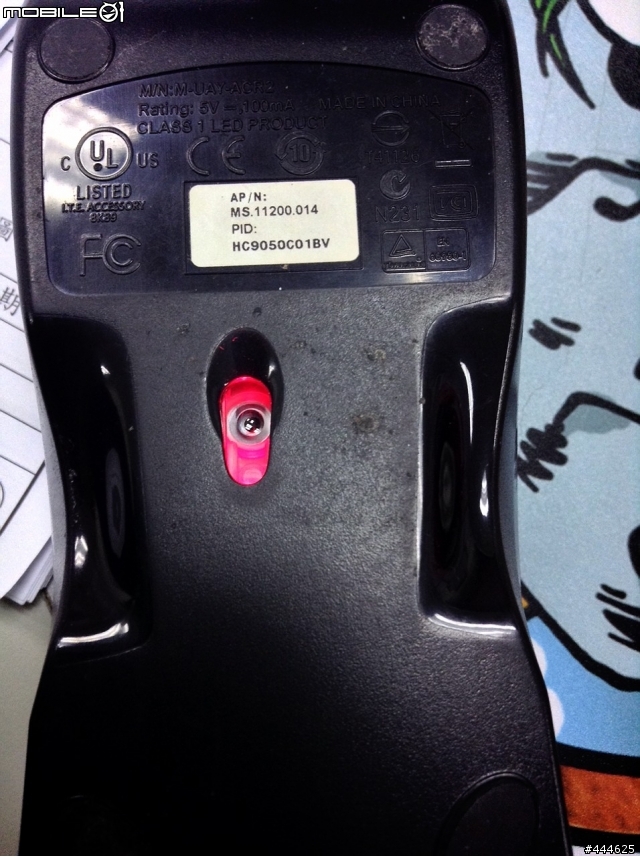 我看到UL安全認證標誌在滑鼠內部標籤的右上方