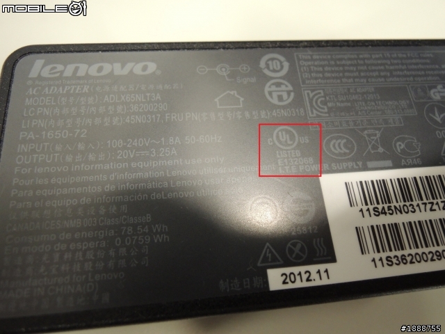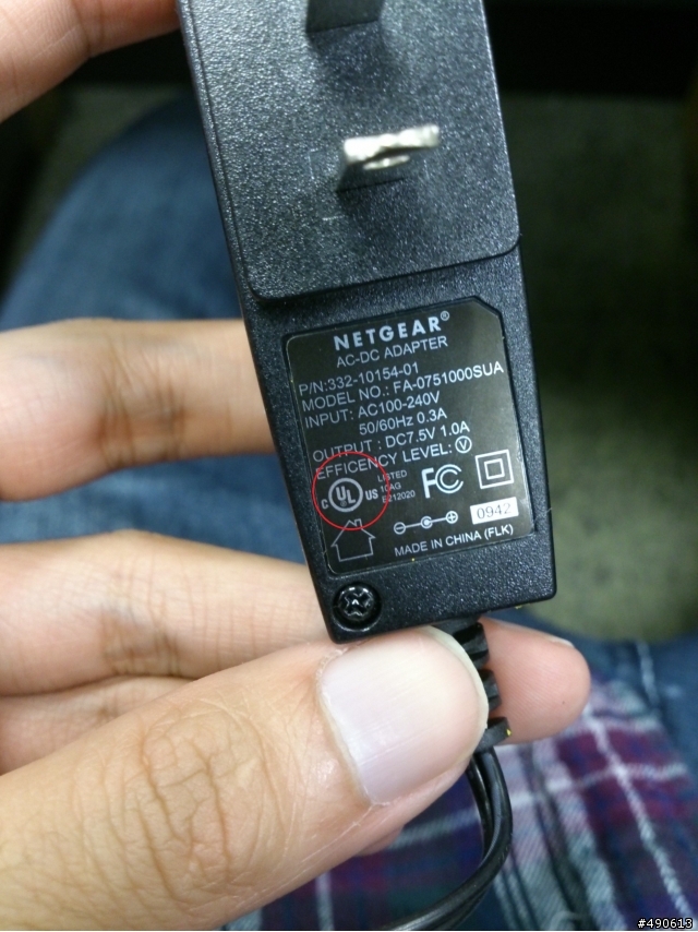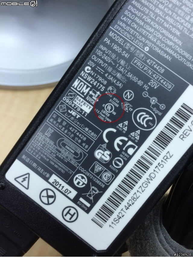 我看到UL安全認證標誌在充電器底部標籤的右上方