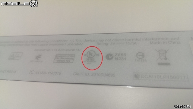 我看到UL安全認證標誌在背後標籤的右邊