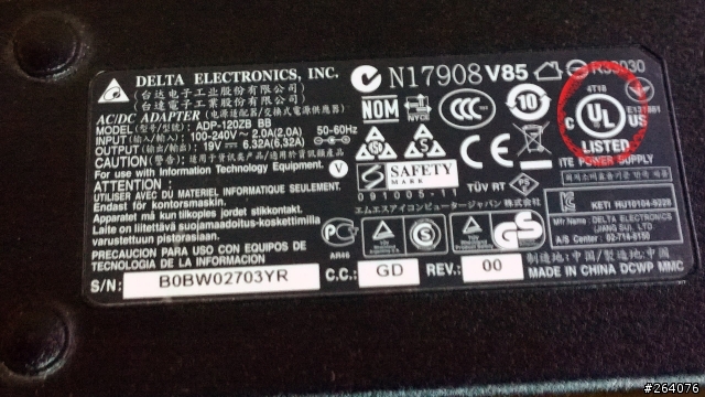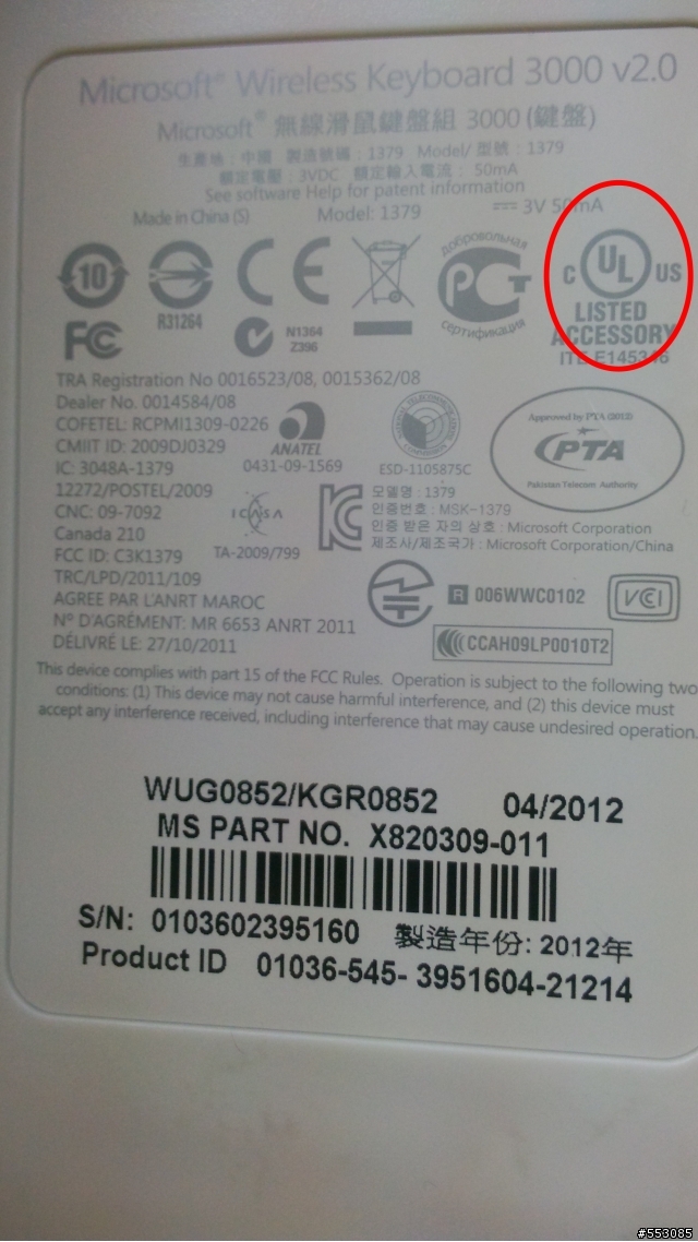 我看到UL安全認證標誌在鍵盤背後標籤的右上方
