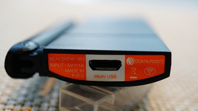 由於沒有內建電池,因此需要透過內附的Micro USB連接線,由外部提供電力。也因為這樣,RealShow真享秀手機影音棒的重量相當輕!