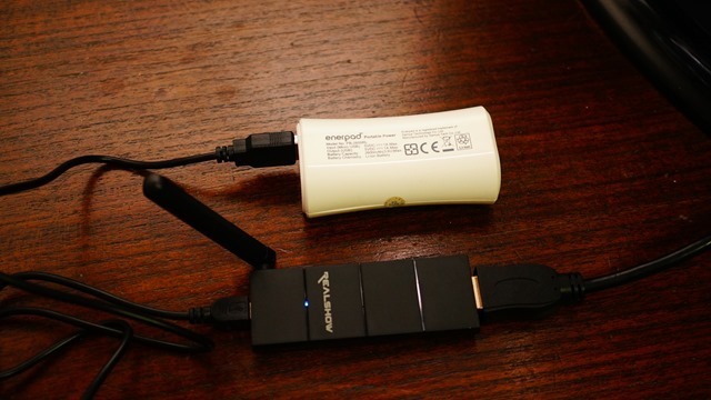 以我這台舊電視來說,雖然只有HDMI連接埠,但利用5V1A輸出的行動電源,就可以驅動RealShow真享秀手機影音棒了。