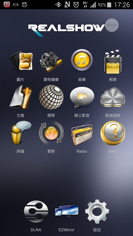 回到手機的RealShow App。這個App提供三種方式讓行動裝置畫面投射到電視螢幕上面,其中主畫面提供的內建選項,是所有行動裝置都能使用的。