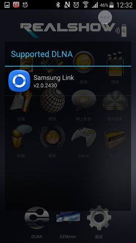像我的手機有支援DLNA,就可以在App裡,選擇DLNA選項進行連接。